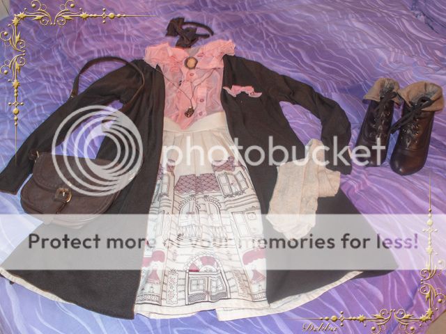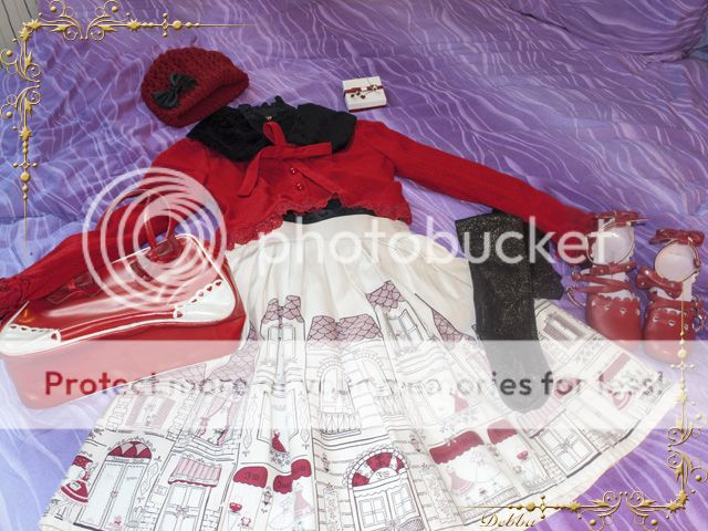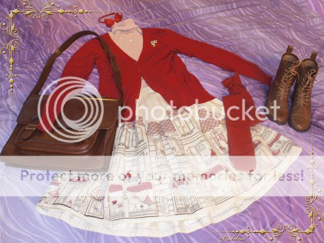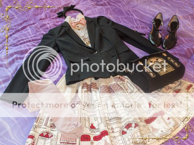 La borsa è della stessa serie della gona ma si tratta della replica di Bodyline che è comunque davvero molto ben fatta. Camicia e fiocco sono hand made, il resto è off brand.